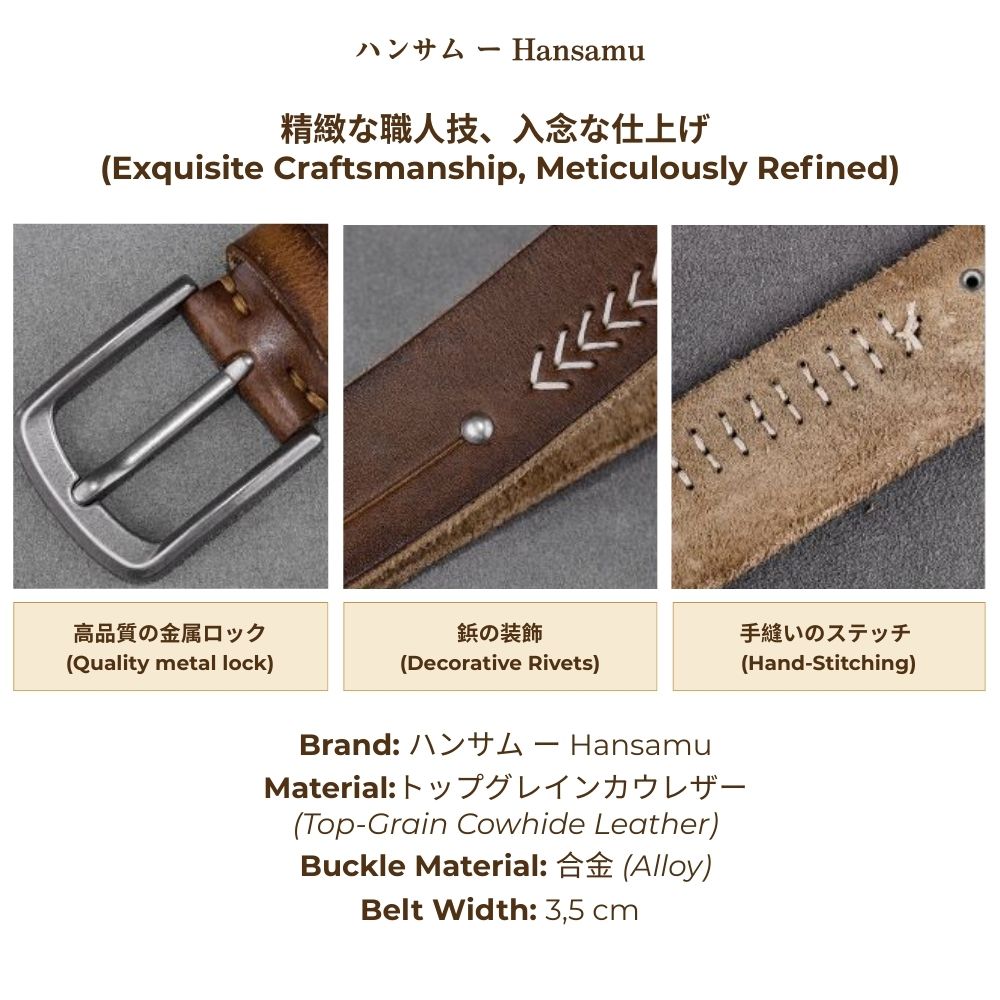 Inspired by this Samurai spirit, Hansamu Rin harmonizes Japanese craftsmanship with the essence of the modern gentleman. This belt is more than anaccessory, it is a personal signature for the man who walks with quiet confidence, self-mastery, and an inner pride that speaks without words.