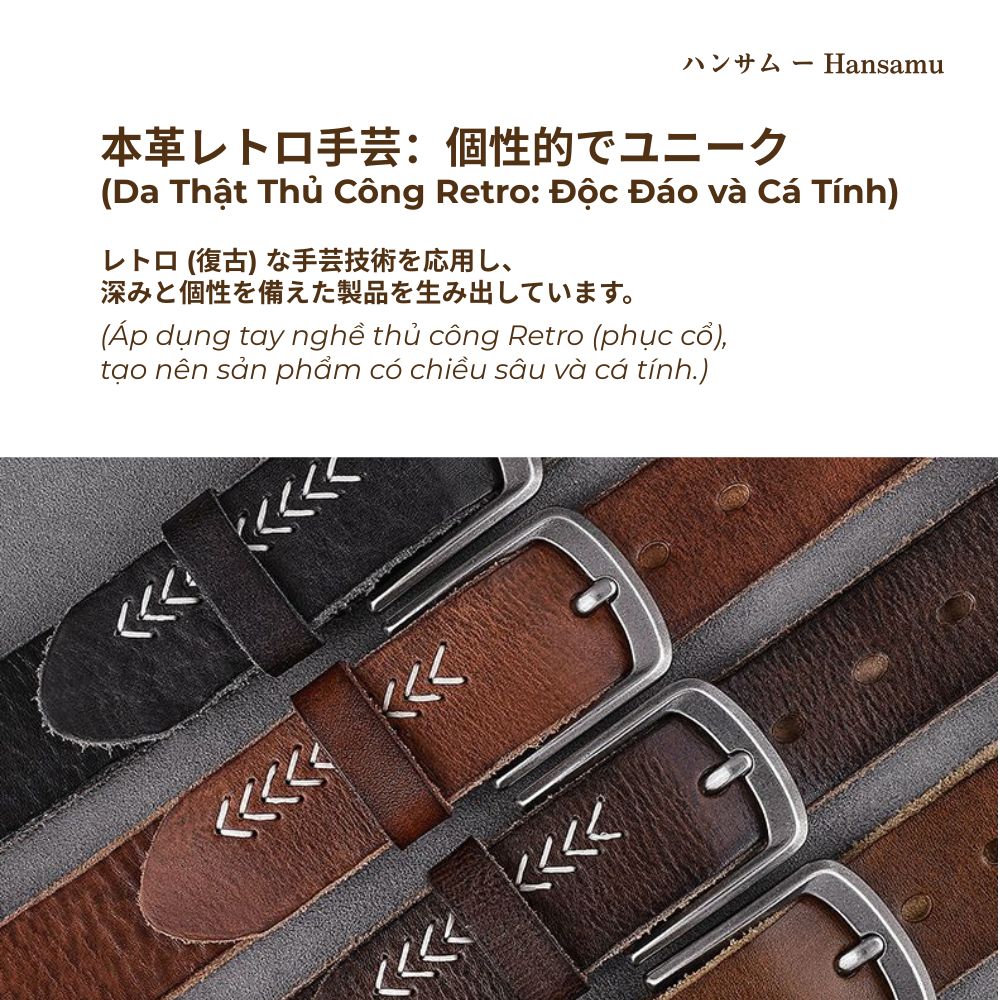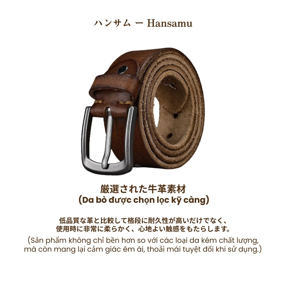 Lấy cảm hứng từ khí chất Samurai, Hansamu Rin là sự kết hợp hài hòa giữa tinh hoa thủ công Nhật Bản và phong thái đàn ông hiện đại. Chiếc thắt lưng trở thành phụ kiện mang dấu ấn riêng, dành cho người luôn bước đi với sự tự chủ và niềm kiêu hãnh thầm lặng.
