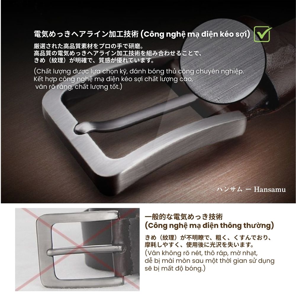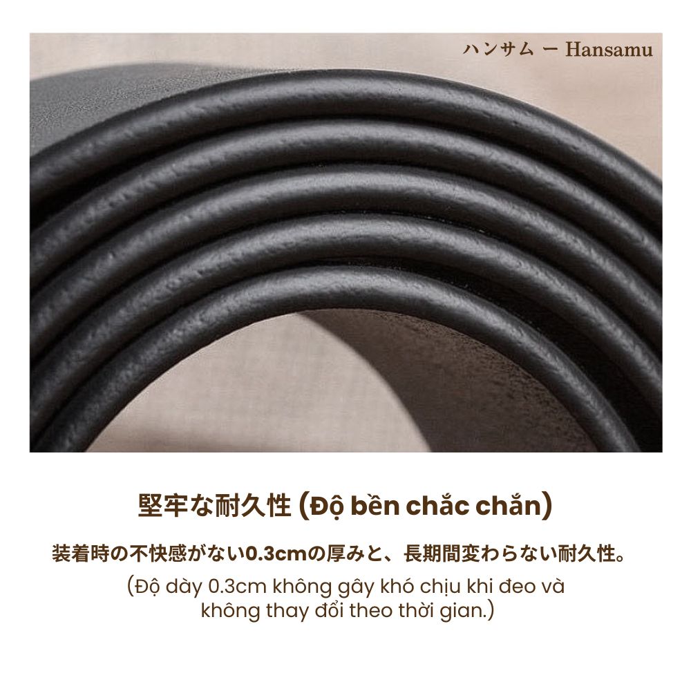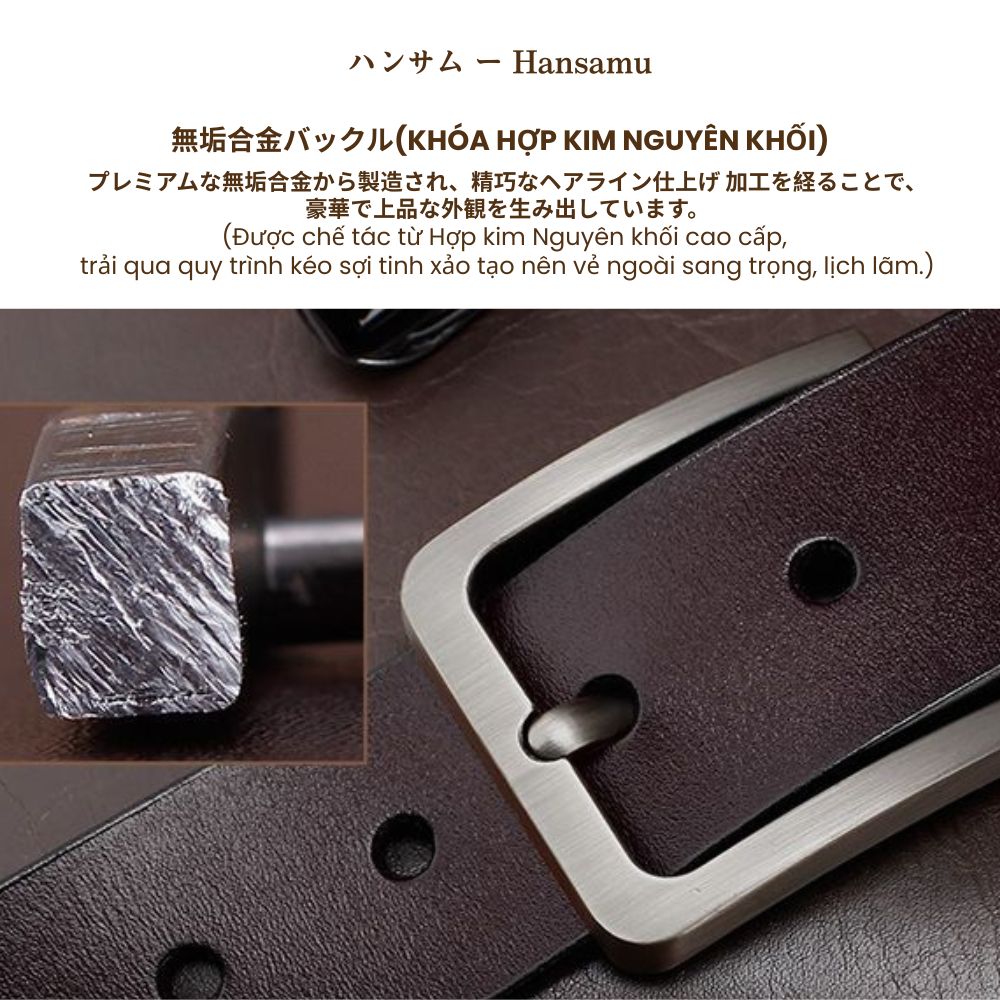 Người đàn ông đích thực không cần dùng lời nói để khẳng định vị thế, vì khí chất của họ được đúc kết từ sự điềm tĩnh, quyền lực và phong thái không thể nhầm lẫn. Hansamu Rin ra đời để trở thành biểu tượng cho phẩm chất ấy. Chiếc thắt lưng Hansamu Rin không đơn thuần là một phụ kiện, mà là mảnh ghép hoàn hảo của "bộ giáp thầm lặng". Nó là dấu ấn rõ ràng nhất của người luôn dẫn đầu bằng sự tự tin, phong thái trưởng thành và khí chất điềm tĩnh tuyệt đối.