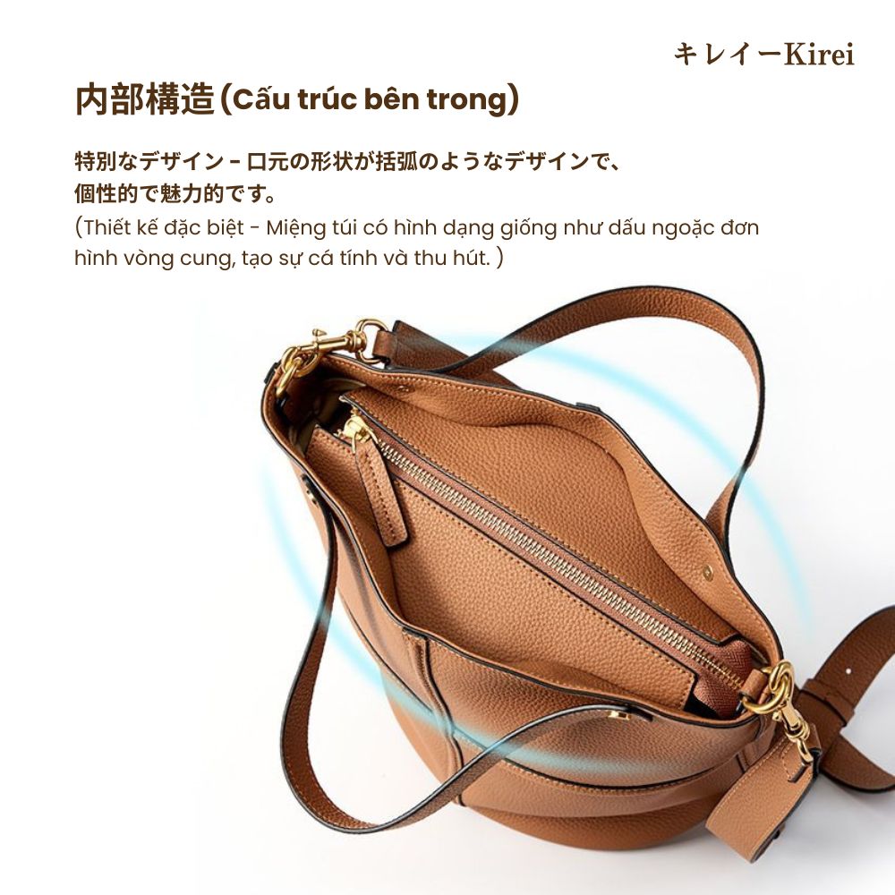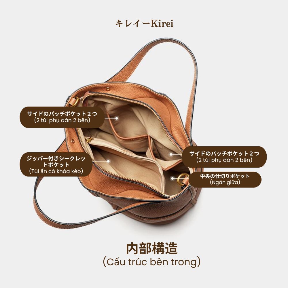 Túi Xách Nữ Da Bò Thật Kirei Ena Kiểu Dáng Xô Nâu – Túi Công Sở Phong Cách Nhật, Thiết Kế Rộng Rãi Đựng Đồ Thoải Mái