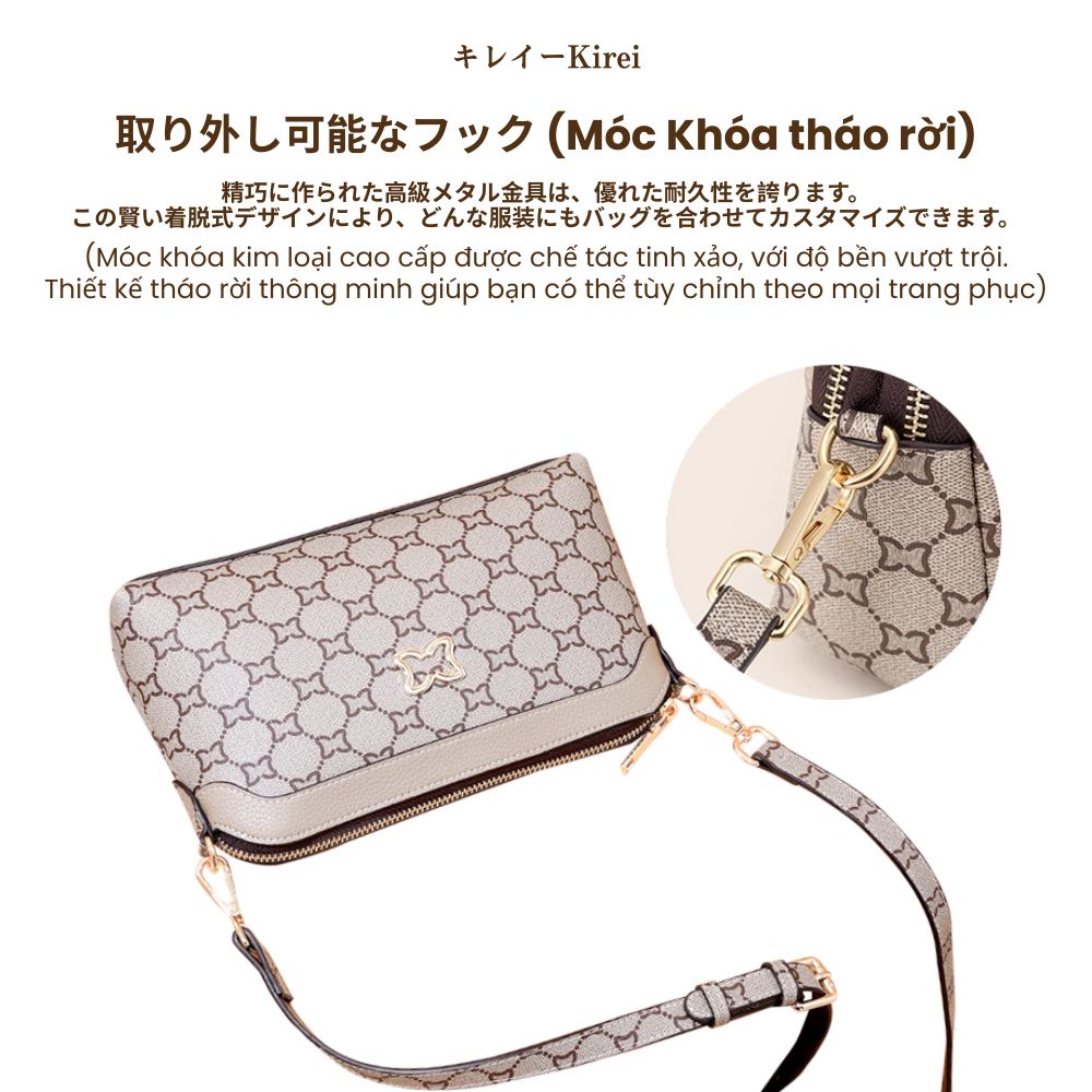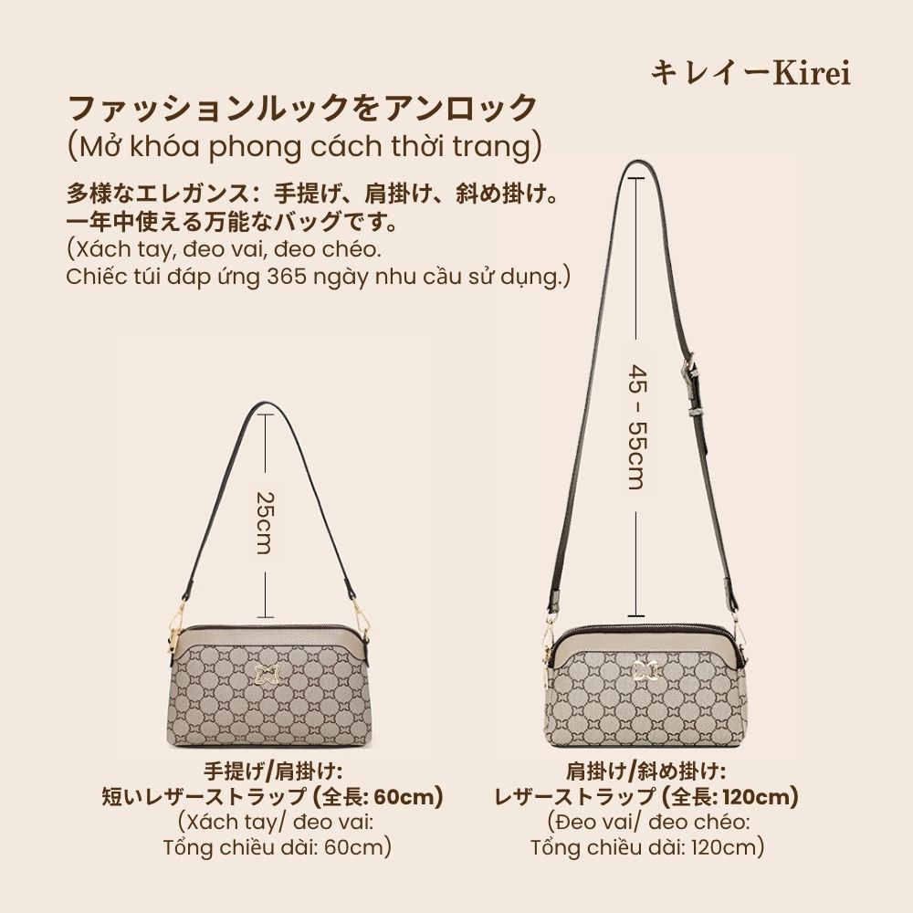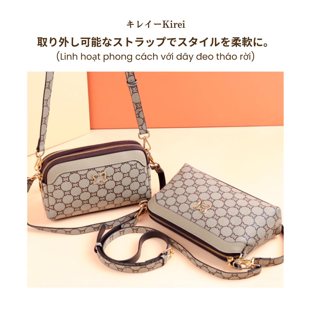 Chiếc túi Kirei Hina là sự giao thoa hoàn hảo giữa truyền thống và hiện đại. Họa tiết cổ điển được khắc họa tinh xảo, như một lời thì thầm về khí chất nghệ thuật riêng biệt của người phụ nữ hiện đại. Với thiết kế đa năng, dây đeo tháo rời linh hoạt, chiếc túi nhỏ gọn này hoàn toàn đáp ứng nhu cầu sử dụng hàng ngày của các chị em, từ xách tay thanh lịch, đeo vai thường ngày, đến đeo chéo năng động.