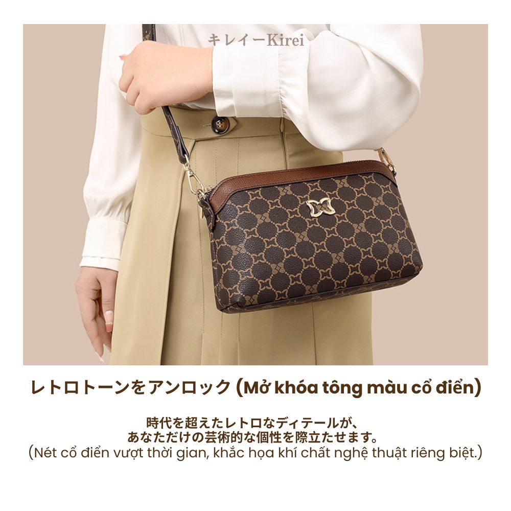 Chiếc túi Kirei Hina là sự giao thoa hoàn hảo giữa truyền thống và hiện đại. Họa tiết cổ điển được khắc họa tinh xảo, như một lời thì thầm về khí chất nghệ thuật riêng biệt của người phụ nữ hiện đại. Với thiết kế đa năng, dây đeo tháo rời linh hoạt, chiếc túi nhỏ gọn này hoàn toàn đáp ứng nhu cầu sử dụng hàng ngày của các chị em, từ xách tay thanh lịch, đeo vai thường ngày, đến đeo chéo năng động.