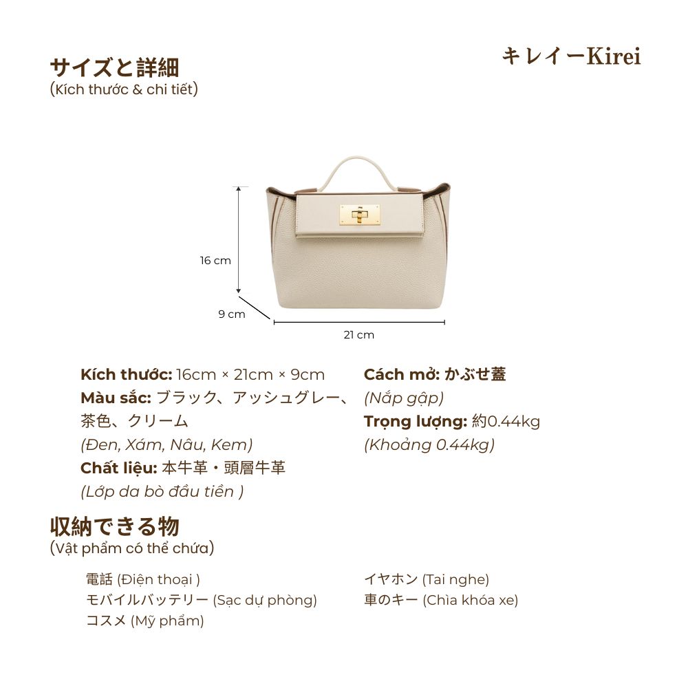 Chất liệu: 本牛革・頭層牛革 (Da bò thật - Da lớp đầu tiên)
