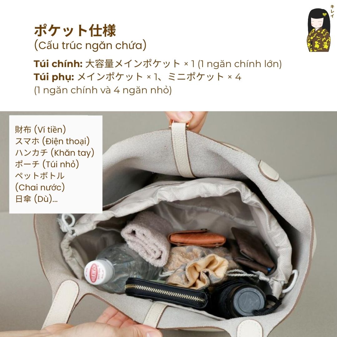 Túi phụ: メインポケット × 1、ミニポケット × 4